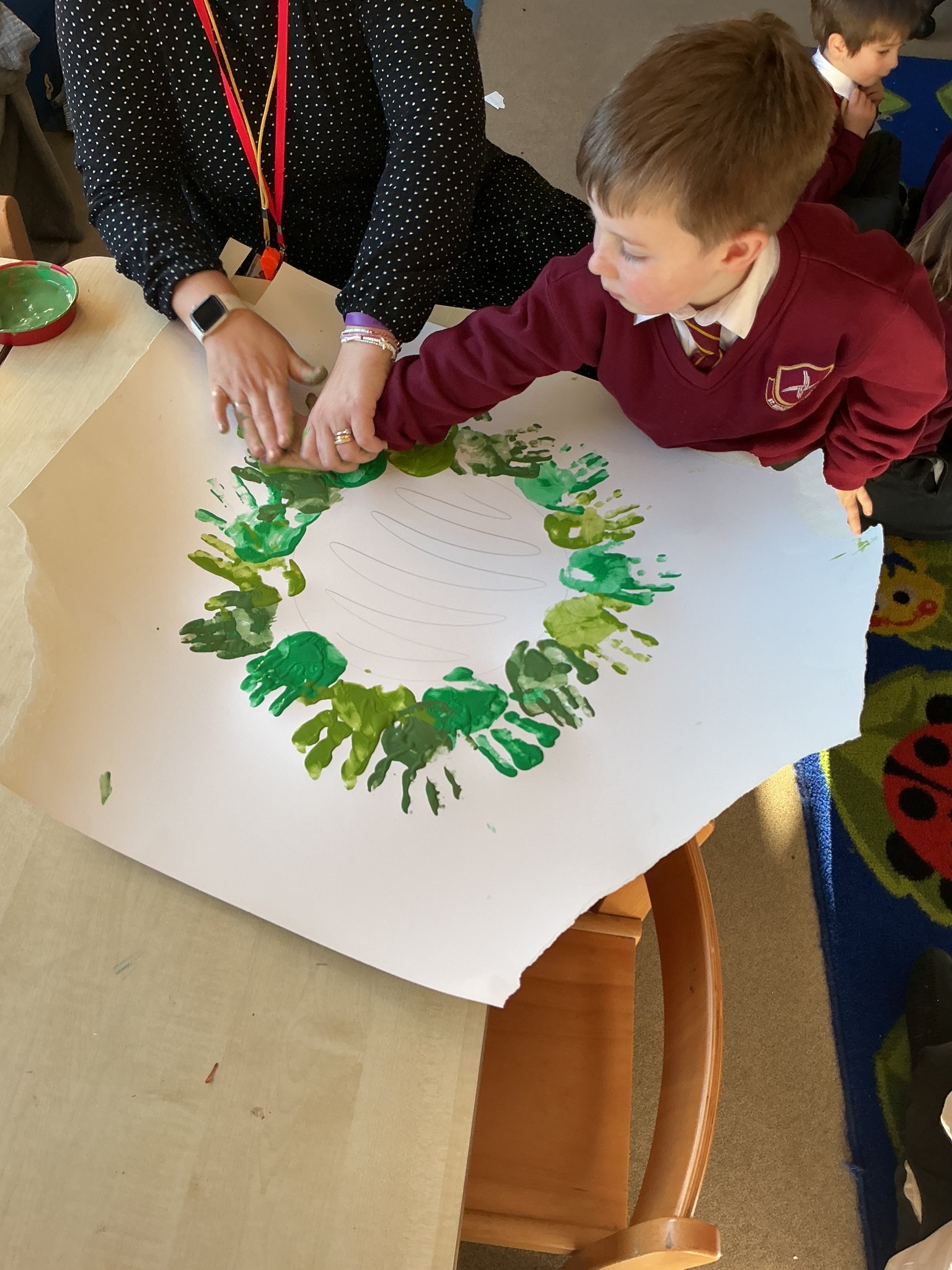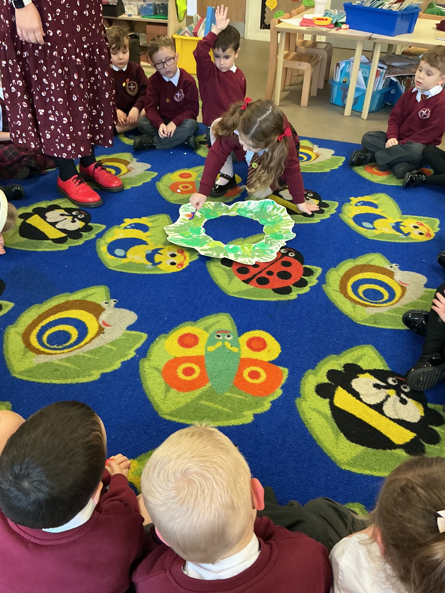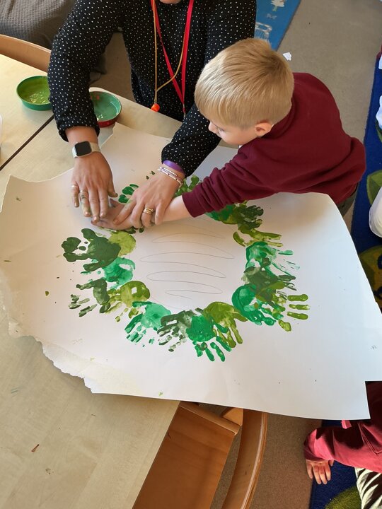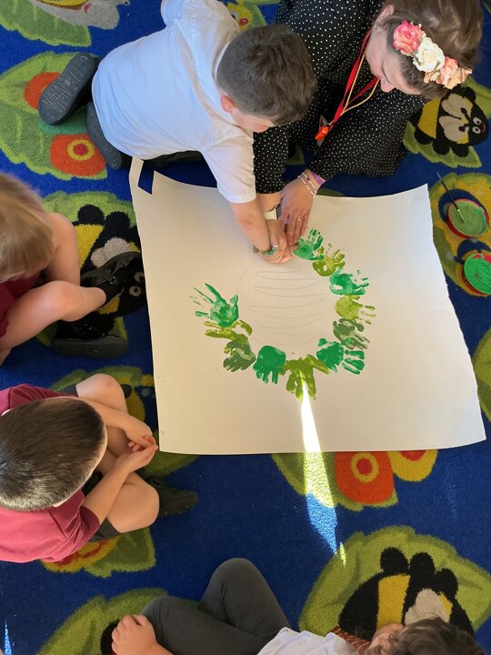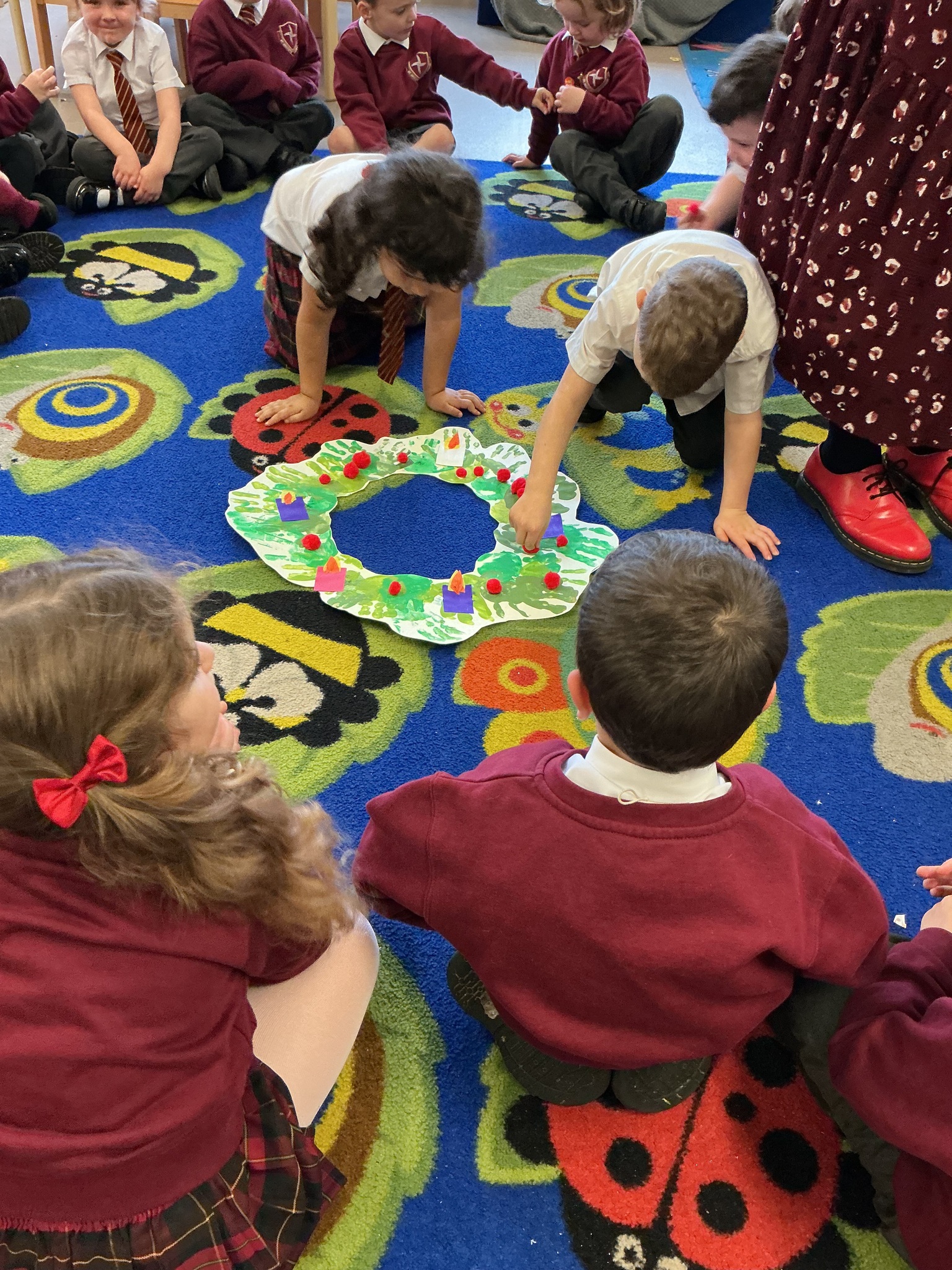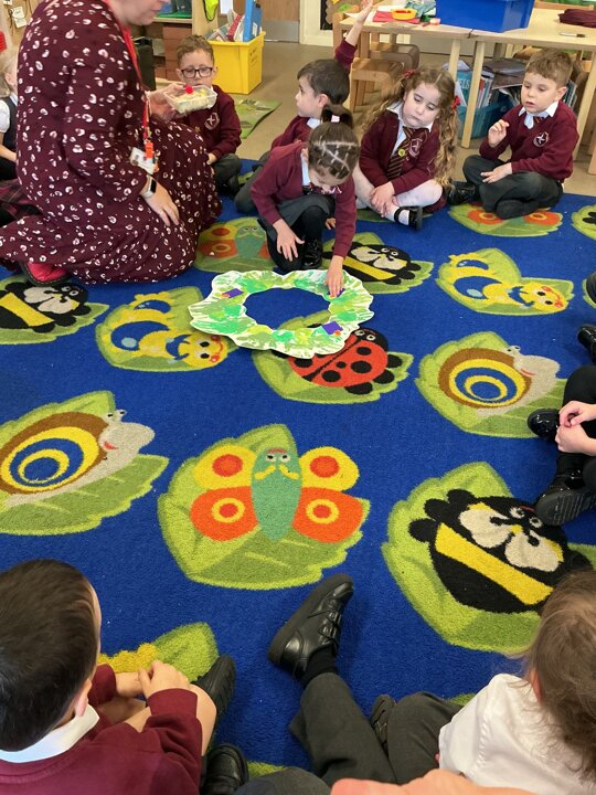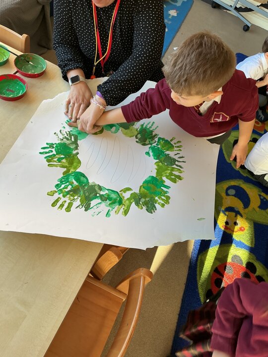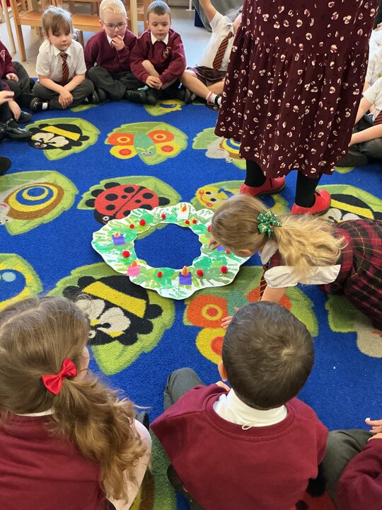 Reception have been learning about the Advent Wreath. They found out that ‘Advent’ means getting ready for Christmas and that the Advent Wreath is used in church to to count down to Christmas by lighting the candles. They found out about the different coloured candles used and their meaning. Reception enjoyed creating their own Advent Wreath as a class using their hand prints.
