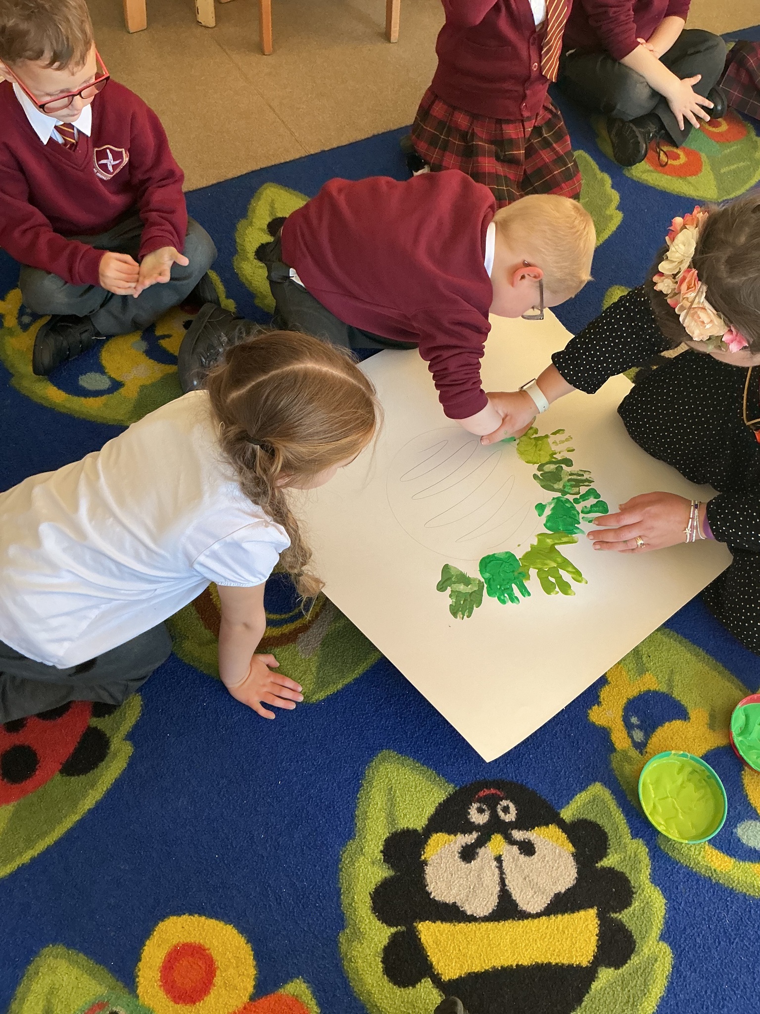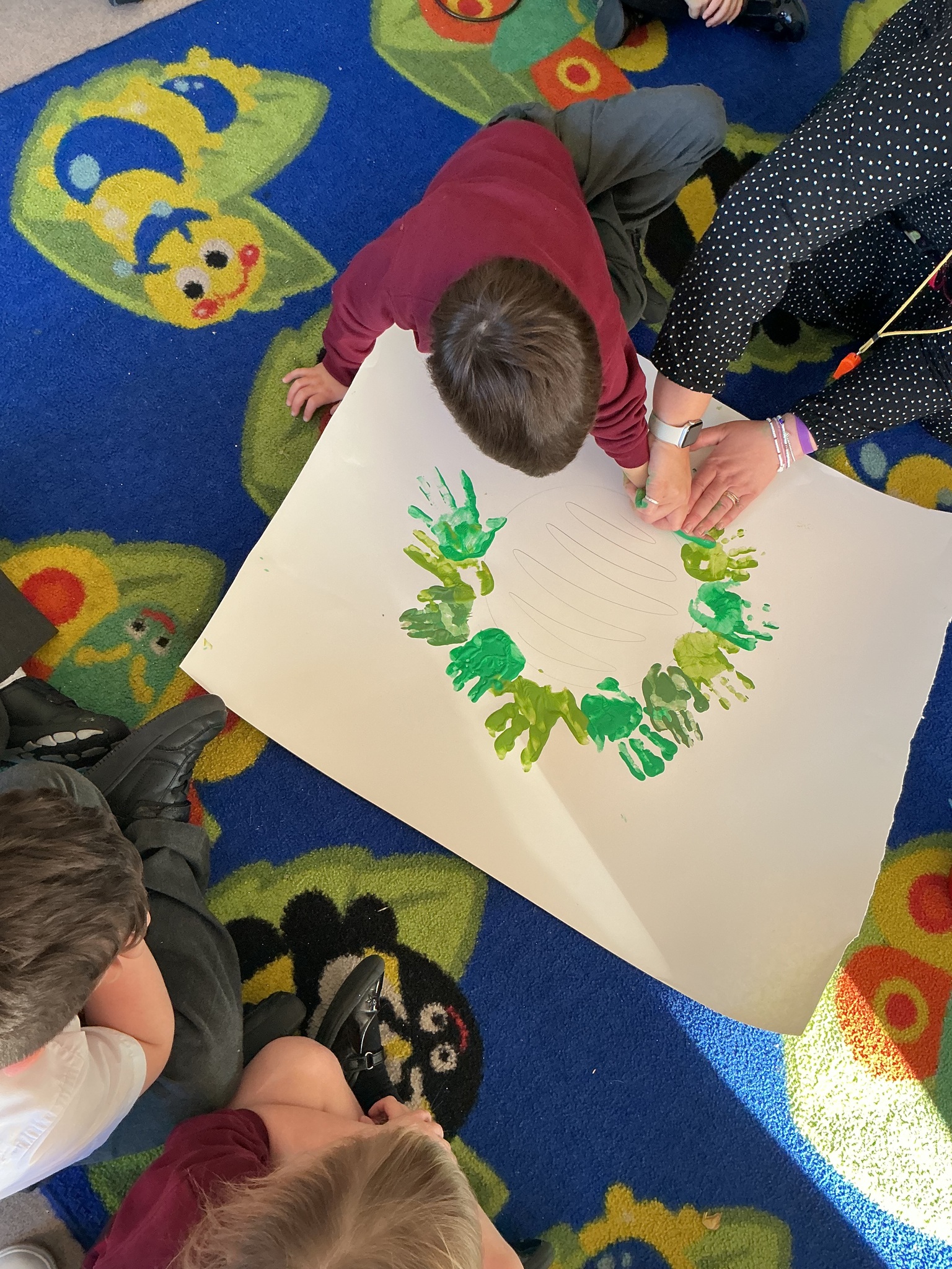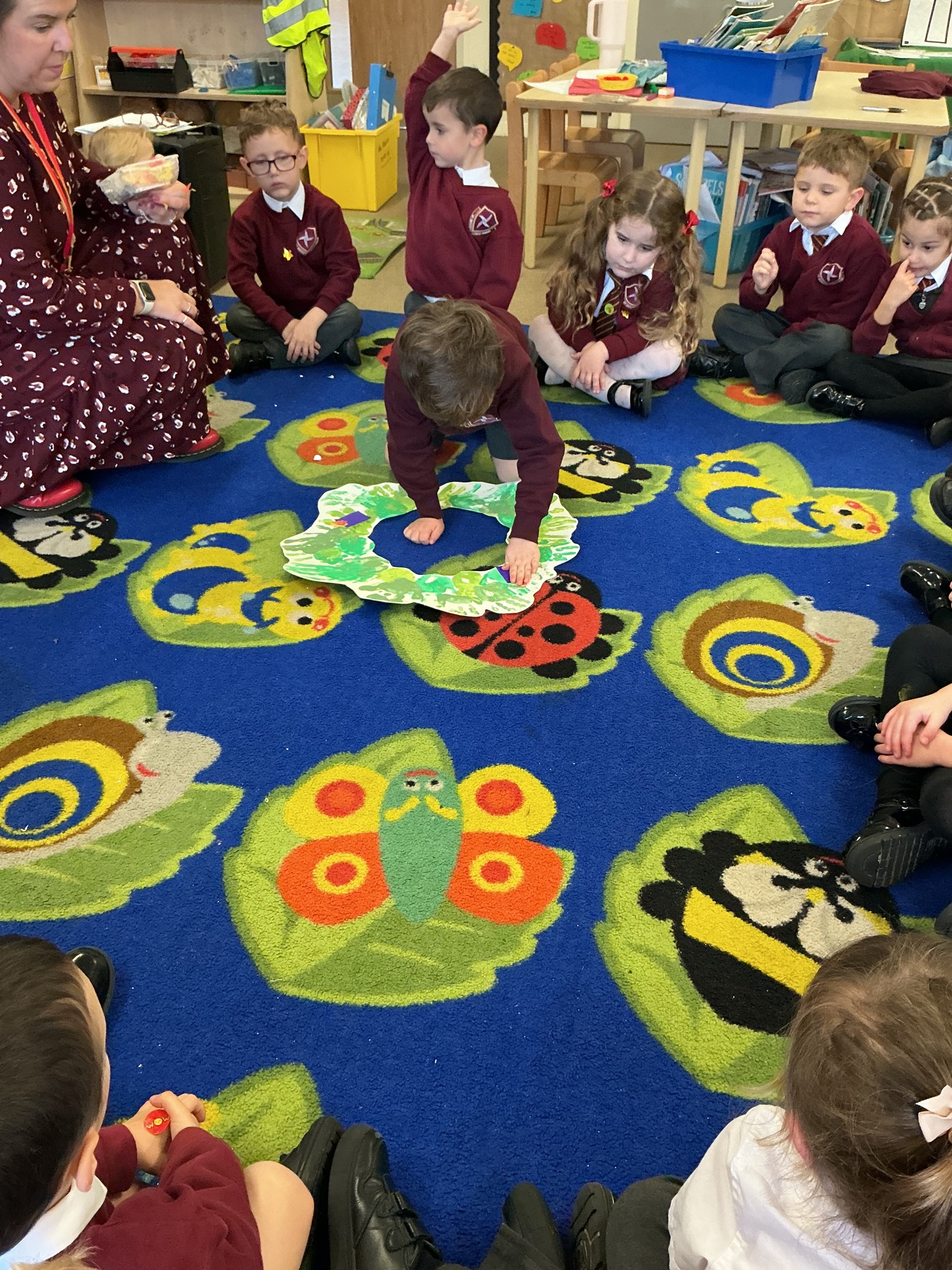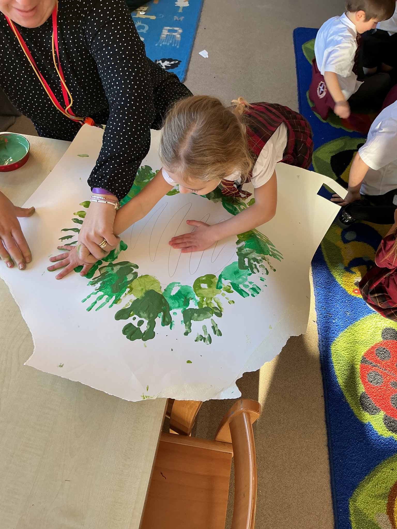 Reception have been learning about the Advent Wreath. They found out that ‘Advent’ means getting ready for Christmas and that the Advent Wreath is used in church to to count down to Christmas by lighting the candles. They found out about the different coloured candles used and their meaning. Reception enjoyed creating their own Advent Wreath as a class using their hand prints.