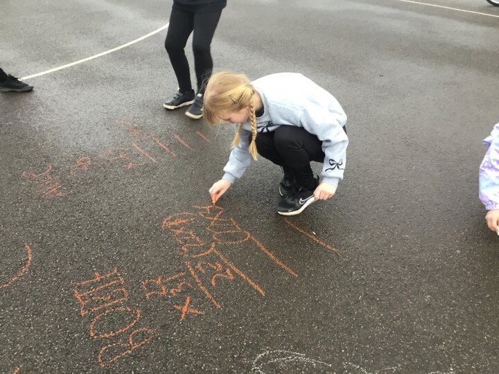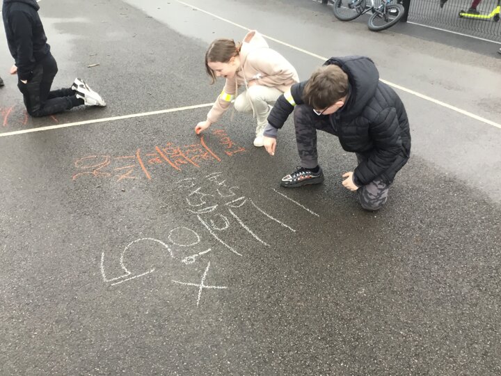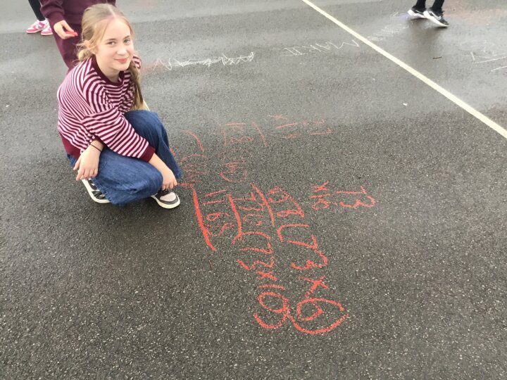 Year 5 had a fantastic Numeracy Day today, playing times tables bingo and taking their long multiplication outside by practising on the playground with chalk.