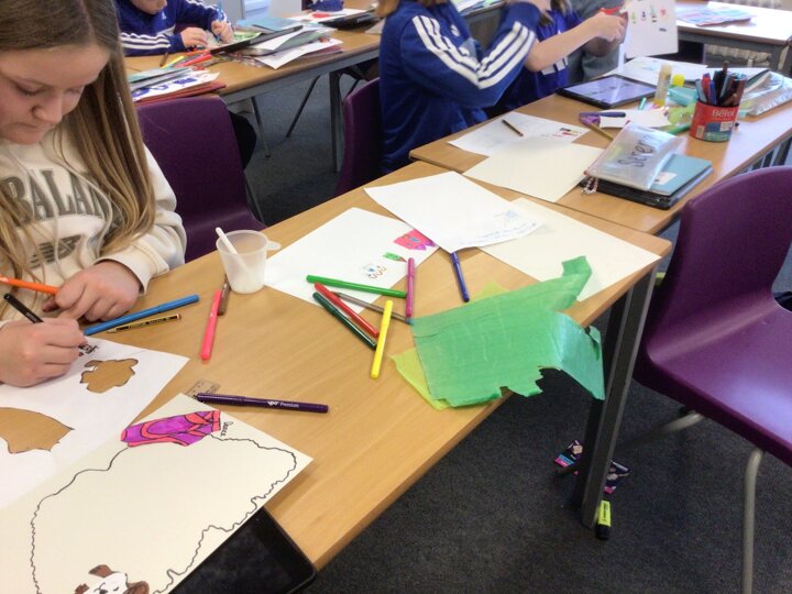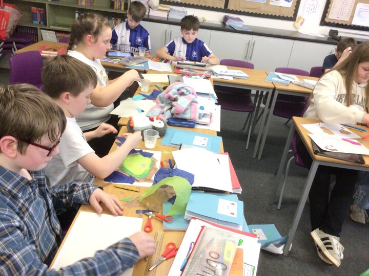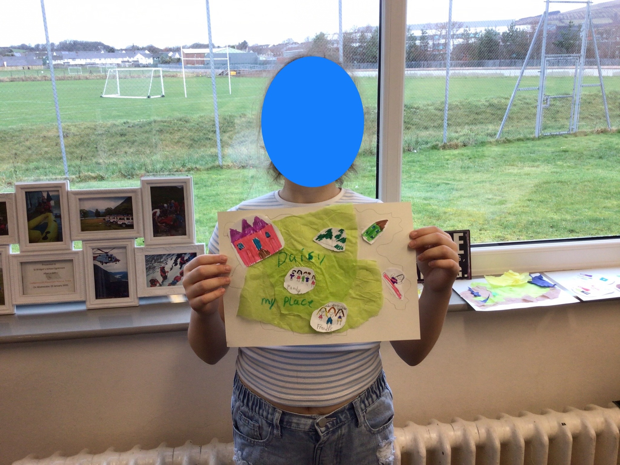 Year 6 explored the theme of belonging through a creative “My Place” collage project. They designed their own imaginary islands, thinking carefully about what makes them feel safe, happy and accepted. Their islands included the fells, cosy reading spaces, family homes, pets, football pitches and peaceful natural settings. Each collage was unique and reflected what belonging means to them personally.